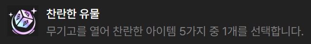 그 외 일반 증강체들은 특성을 획득할 수 있는 증강체나 전투형 증강체로는 무난한 천상의 축복, 사냥의 전율, 재생의 바람 등을 추천드립니다.