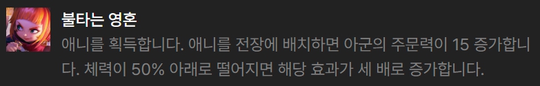 초반 피오라와 갱플랭크, 케일, 야스오를 이용해 결투가(4)를 활용하거나 혹은 애니와 럭스를 이용해 주문투척자(2)를 활용할 수 있습니다. 아니면 뽀삐나 룰루를 애니와 함께 사용하여 기계유망주(3)을 받으며 가는 방법도 있습니다.