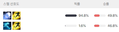 적에게 진입하는 챔피언답게 스펠은 눈덩이와 점멸을 들어줍니다.
