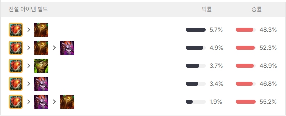 시작 아이템은 마법공학 교류 발전기와 신발, 포션 하나로 시작합니다. 이후 첫 코어 아이템으로 핵심 아이템인 강철심장을 뽑아주고, 이후 상대 조합을 보고 헤르메스 또는 판금신발을 띄워줍니다. 그 다음에는 딜이 버틸만 하면 악마의 포옹부터 올려주고, 그게 아니라면 태양불꽃 방패를 올려준 뒤 악마의 포옹을 올려줍니다. 마지막으로는 워모그의 갑옷이나 대자연의 힘 등을 상황에 맞게 올려주면 되겠습니다.