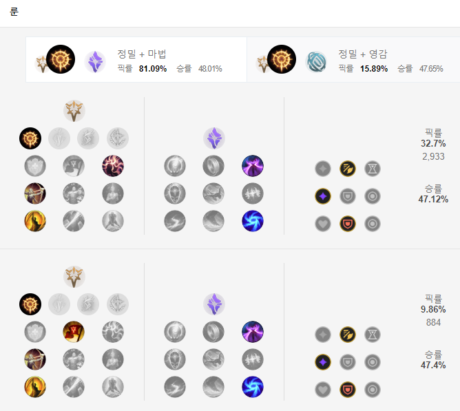 위험한 순간에서 킬이나 어시스트를 따내 죽을 것도 살게 해주는 승전보와 강인함, 그리고 최후의 일격을 통해 딜링을 조금이라도 더 상승시켜주는게 좋고 보조 룬에는 빛의 망토를 통해 도주 및 추노를 원활하게 할 수 있게 해주며 폭풍의 결집을 통해 시간이 갈수록 조금이나마 공격력을 확보해주는게 좋습니다.