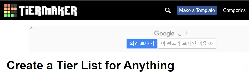 티어메이커 사이트에 접속하면 오른 쪽 위 돋보기 버튼을 눌러 검색을 할 수 있습니다.